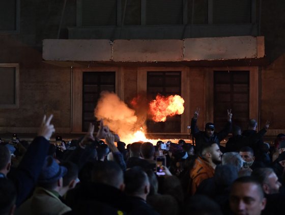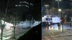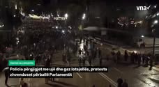Protesta e opozitës e zhvendosur te Parlamenti, është shoqëruar me tensione. Qytetarët kanë hedhur bomba molotov dhe i vunë flakën edhe koshave, ndërsa policia u kundërpërgjigj me gaz lotsjellës.