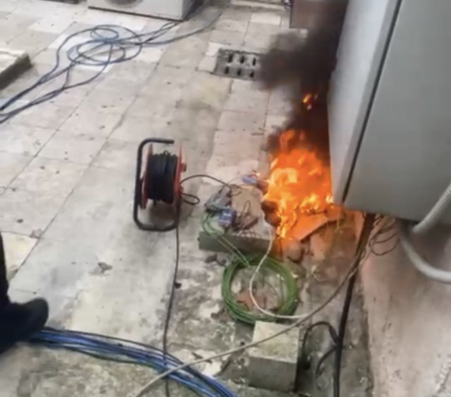 Teksa brenda Kuvendit situata ishte jashtë kontrollit, jashtë godinës fibrat e transmetimit të televizioneve u përfshinë nga flakët, duke shkaktuar ndërprerje të transmetimeve live. Ende nuk dihet shkaku i zjarrit.