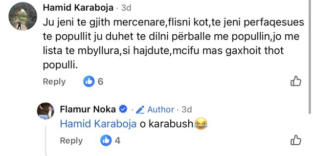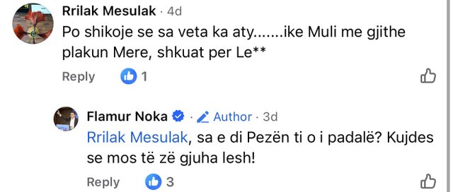 But the "champion" of aggressive tones remains Flamur Noka. To commentators who oppose him, he responds with phrases like " o kuqo, o karabush, pi nai cigare hashash " or "i padale." It seems that the oppositionist does not even spare the street vocabulary to defend the virtual honor of the party.
