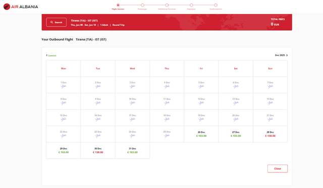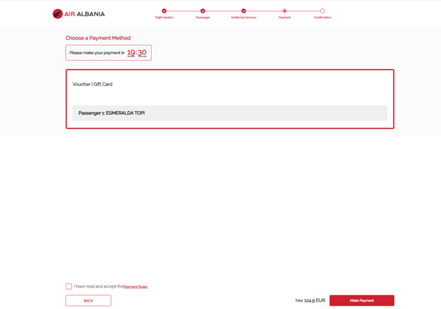 Faktoje provoi të blinte një biletë vajtje-ardhje nga Tirana në Milano për datat 8–10 janar, por, gjatë testimit, blerja nuk mund të përfundonte.