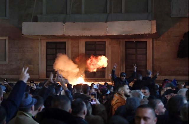 Po ashtu, gjatë kaosit të krijuar, një qytetar u përfshi nga flakët e një molotovi, duke pësuar djegie.