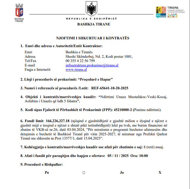 Bashkia e Tiranës kërkon që punimet për të tre rrugët të përfundojnë brenda 8 muajve nga lidhja e kontratës, që do të thotë rreth qershorit të vitit 2026. Megjithatë, nëse Gjykata Kushtetuese vendos që shkarkimi i Veliajt është i drejtë dhe hap rrugë për zgjedhjet e pjesshme në kryeqytet, këto kontrata mund të interpretohen si “asfalte elektorale”.