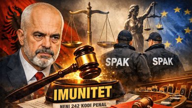 “Siç e shihni parlamenti është strofull e mbrojtjes së hajdutëve. Këta që janë pas shpinës time dhe këta të këtij krahu janë maska e Lubisë dhe Ramës. Kurrë nuk keni patur në këtë sallë një grup njerëzish që shkelmojnë mbi interesat tuaja jetike për të mbrojtur vithet e Belindës, në të vërtetë Edi Ramën”, u shpreh Berisha.