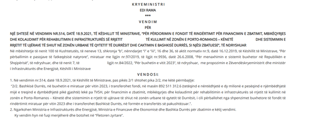 Qeveria duhet të shpjegojë se çfarë ndodhi me 8.2 milionë eurot që Këshilli i Ministrave i kaloi Bashkisë Durrës në vitin 2023, për ndërtimin, mbikëqyrjen dhe kolaudimin e rrjetit të kullimit në Porto-Romano dhe Ish-Kënetë. Pse këto fonde nuk mjaftuan që Durrësi sot të mos përmbytet?