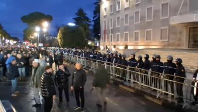 Përplasjet vazhduan edhe aty, ku protestuesit hodhën objekte ndaj forcave të rendit, ndërsa policia përdori gaz lotsjellës për t’i shpërndarë.