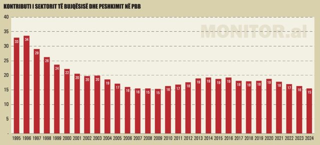 Ekspertët pohojnë se bujqësia ka hyrë në një proces të fortë ristrukturimi, ku nga njëra anë, një segment i modernizuar për eksport po rritet me ritme të larta dhe nga ana tjetër, bujqësia tradicionale po tkurret me shpejtësi. Në total, bujqësia mbetet ndër sektorët me rënien më të madhe të kontributit në PBB me 15.6% në vitin 2024 nga 19.2% në vitin 2014, duke nxjerrë në pah vështirësi të theksuara strukturore.