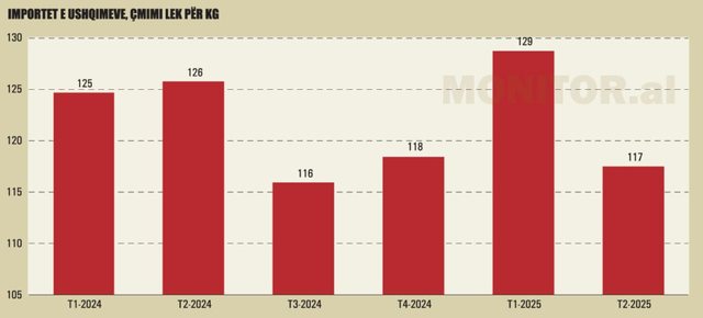Gjatë periudhës janar-tetor 2025, importet e ushqimeve u rritën si në vlerë dhe në sasi. Të dhënat zyrtare tregojnë se u importuan 135 miliardë lekë ushqime (rreth 1.4 miliardë euro) ose 28% më shumë se në 10-mujorin 2021.