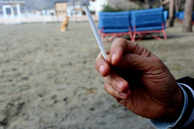 Një shtetas afgan mban një cigare në dorë në Shëngjin, pak ditë pasi Donald Trump mori detyrën si President i SHBA-së dhe nisi një fushatë të ashpër kundër emigracionit, duke ndërprerë gjithashtu ndihmat për vendet e tjera.