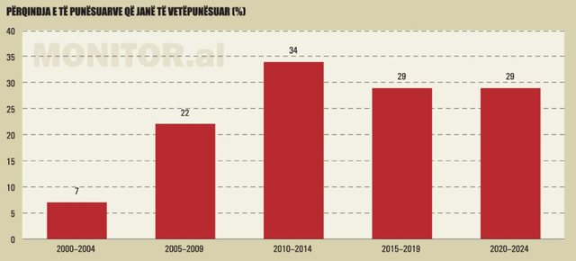 Pesha e emigrantëve të kthyer që janë të vetëpunësuar është rritur ndjeshëm deri në vitin 2014, qoftë si rezultat i rritjes së kapaciteteve sipërmarrëse, qoftë për shkak të vështirësive në aksesin ndaj punësimit formal, por kjo prirje ka mbetur relativisht e qëndrueshme më pas.