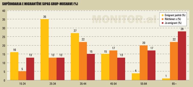 Migracioni shqiptar karakterizohet kryesisht nga punëtorë të rinj, meshkuj dhe me aftësi të mesme, që kërkojnë mundësi ekonomike jashtë vendit, me dallime të rëndësishme gjeografike brenda vendit.