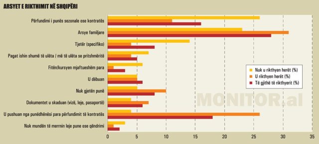Ndërsa ata që qëndruan më gjatë jashtë vendit u kthyen më shumë për shkak të përfundimit të punës sezonale ose kontratës, apo sepse kishin arritur të fitonin dhe kursenin mjaftueshëm para (6%).